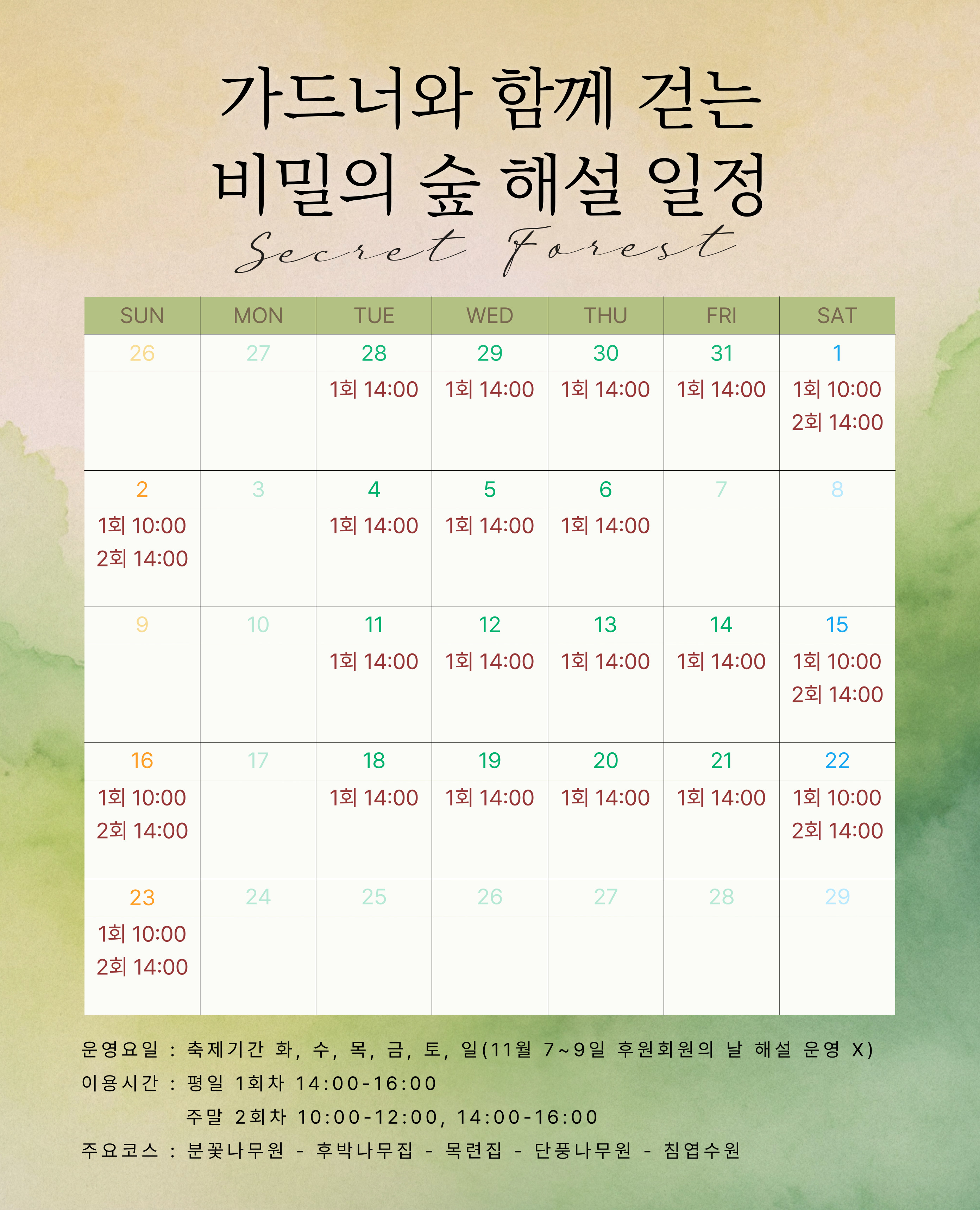 10월 28일 ~ 11월 23일 (월요일 제외, 사전 예약 필수)