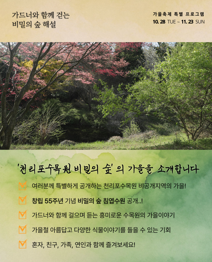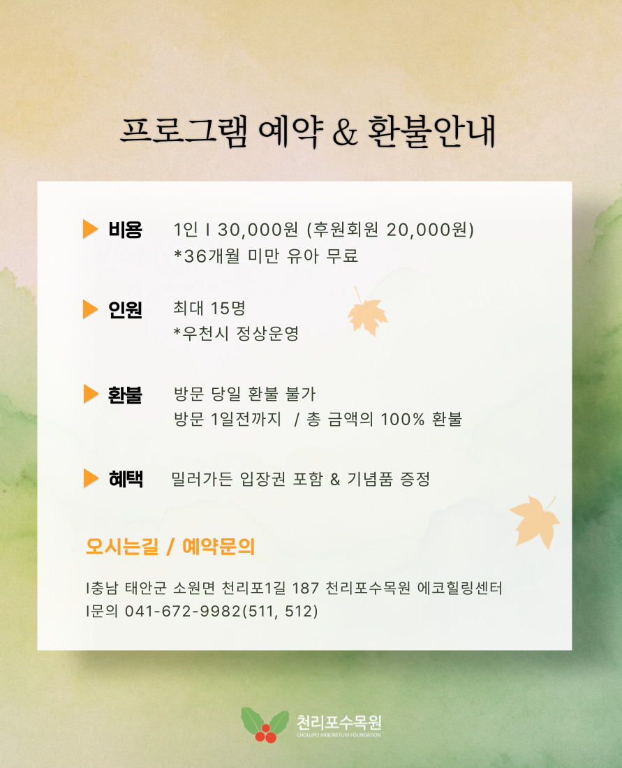 붉게 물든 단풍과 반가운 열매가 가득한 계절, 가을이 아름다운 천리포수목원에서 가을축제가 시작됩니다.