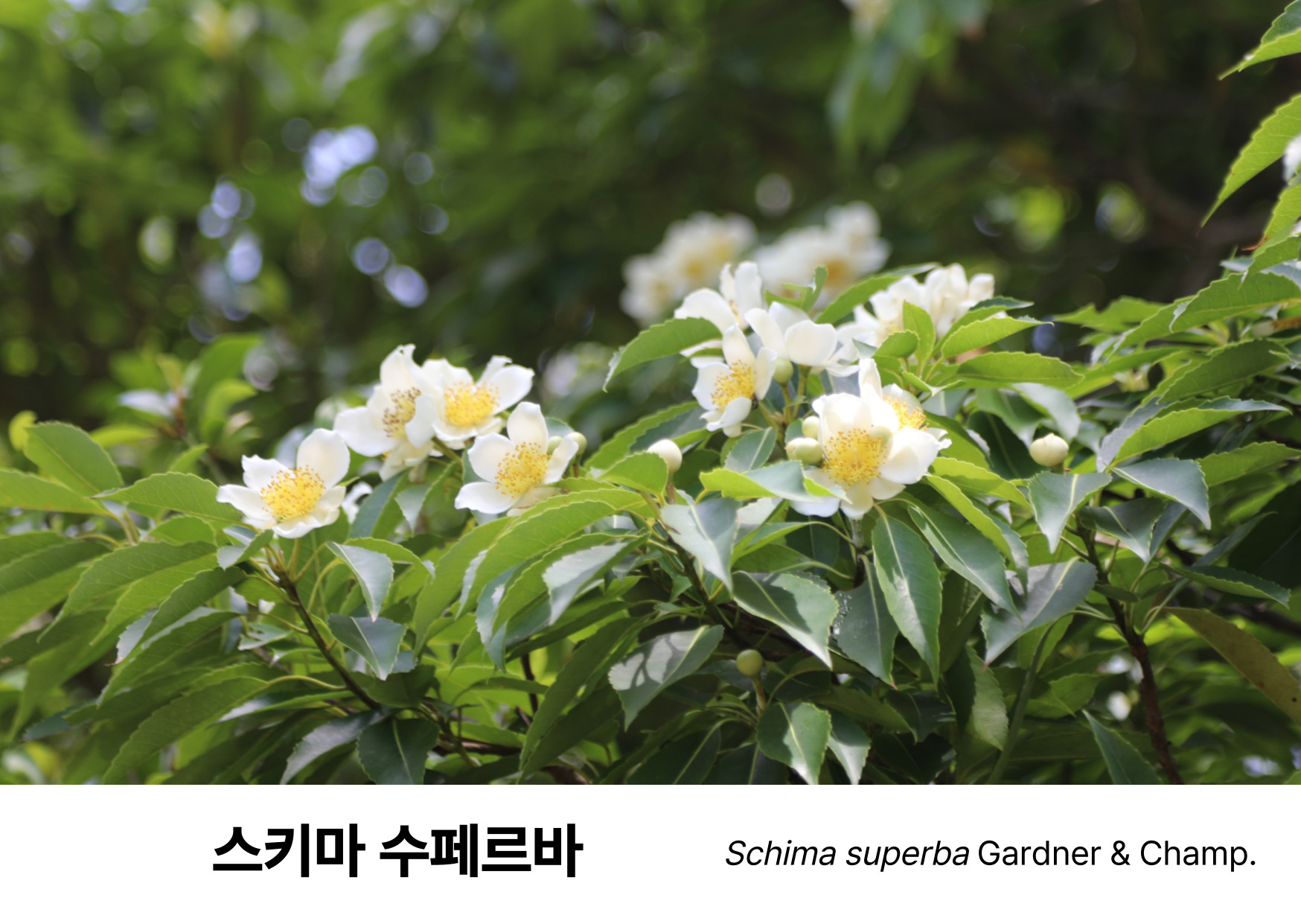 벽을 타고 올라가는 미국능소화, 노란 수술과 흰색 꽃잎이 인상적인 스키마 수페르바 역시 탐방객들의 시선을 사로잡습니다.