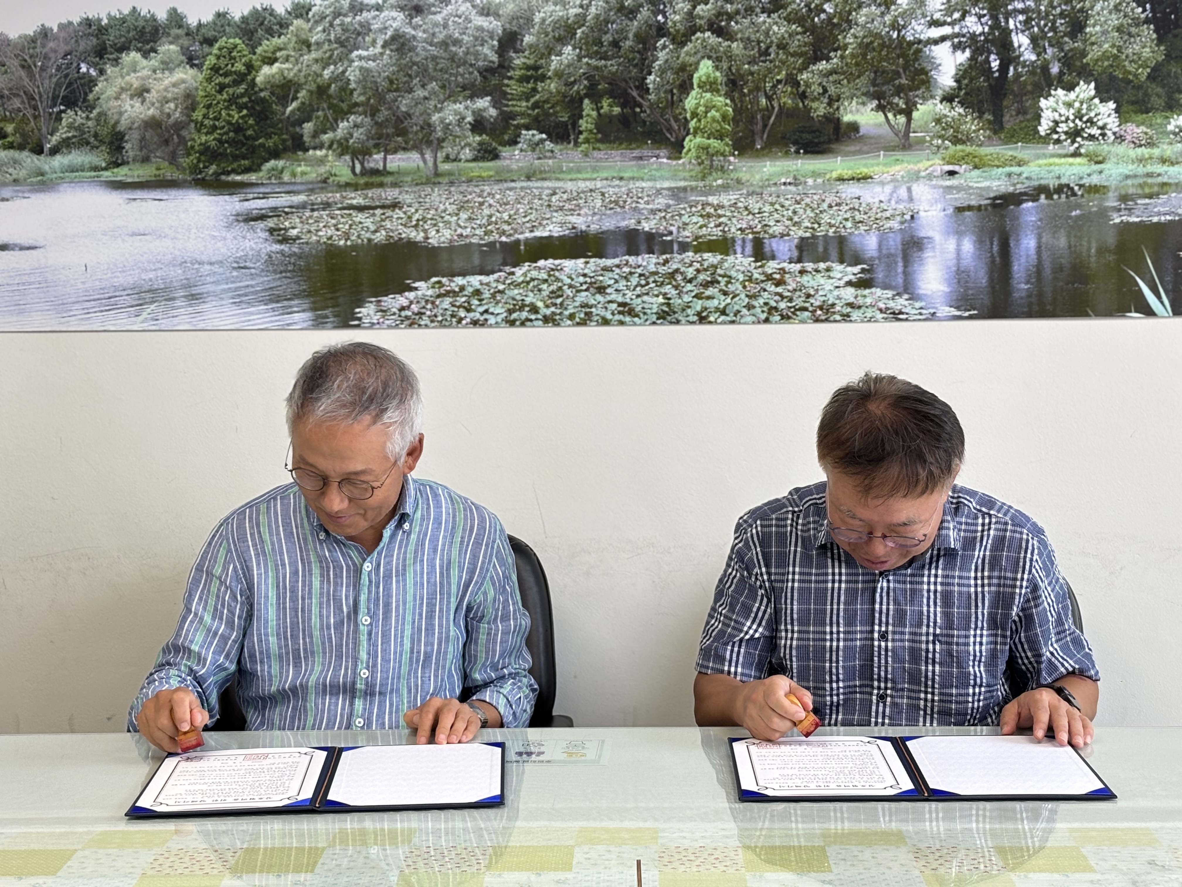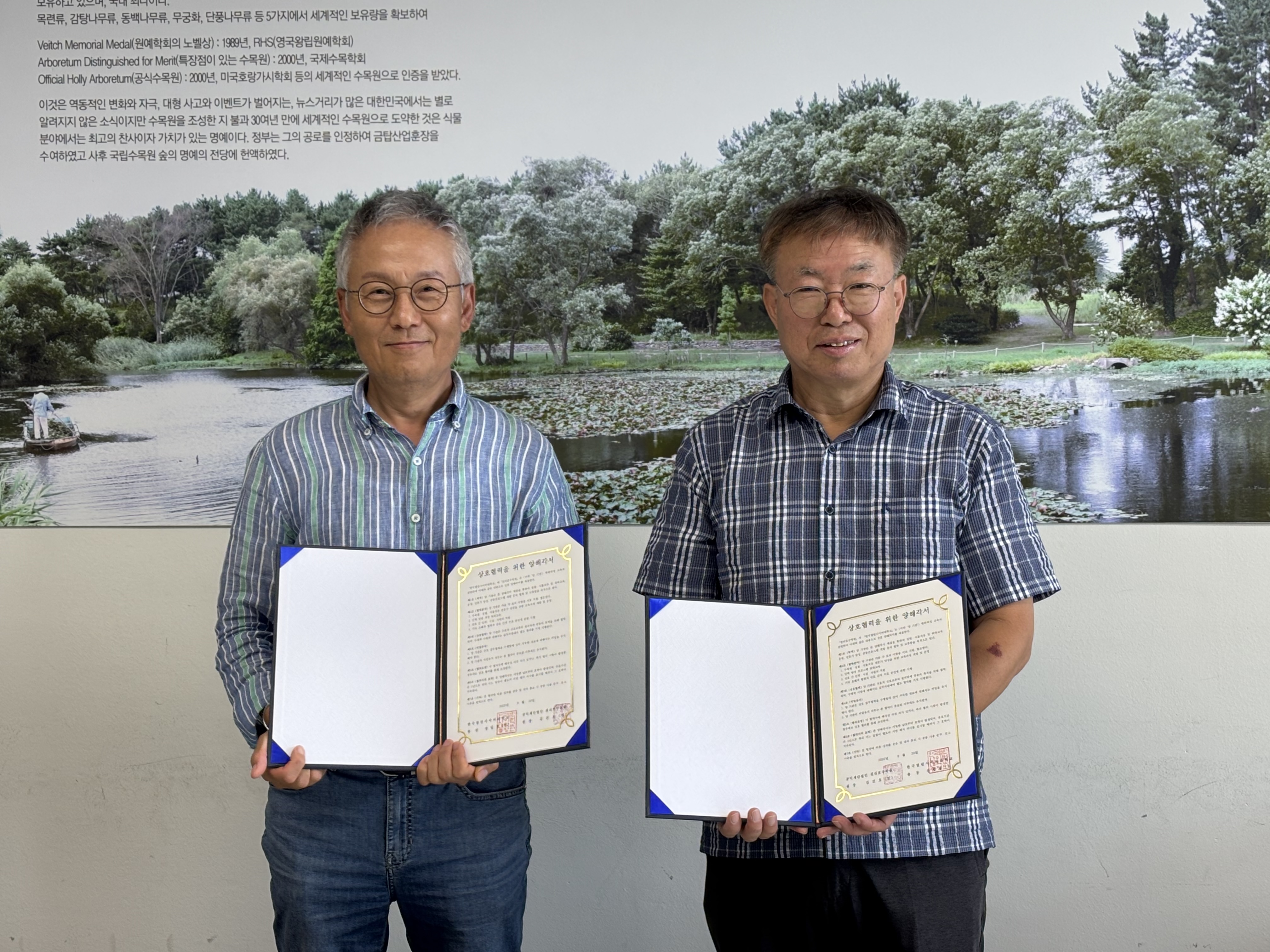 천리포수목원과 한국열린사이버대학교는 이날 정원·식물치유 및 위탁교육 운영, 전문가 양성, 공동프로그램 개발 등 공동의 목표를 위한 업무협약을 진행하였습니다.